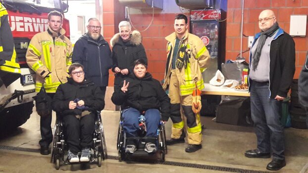 ...Die Schwierigkeit lag darin, dass er seine Beine nicht bewegen kann und somit nicht in der Lage war, in ein großes Fahrzeug einzusteigen. Noch am selben Abend habe ich dann mit der Jugendfeuerwehr Kontakt aufgenommen, in der Hoffnung, gemeinsam den Herzenswunsch erfüllen zu können. Die Jugendfeuerwehr war sehr von dem Wunsch angetan und hat sehr schnell reagiert. Gemeinsam wurde der Wunsch dann am Mittwoch den 18.12.2019 in die Tat umgesetzt. Vorerst gab es zum Kennenlernen in einem lockerem Gespräch einen warmen Kakao und Gebäck. Es war eine sehr familiäre Stimmung. Beim Rundgang hat uns die Jugendfeuerwehr alles erklärt und auch die Fahrzeuge näher gebracht. Alle Fragen wurden beantwortet, sodass wir bereit für die große Überraschung waren. Elias und seine Begleitung (sein Pflegebruder, der auch im Rollstuhl sitzt) wurden Feuerwehrschutzjacken und Helme aufgesetzt. Eine Rundfahrt durch die Umgebung war der Höhepunkt des Abends.
